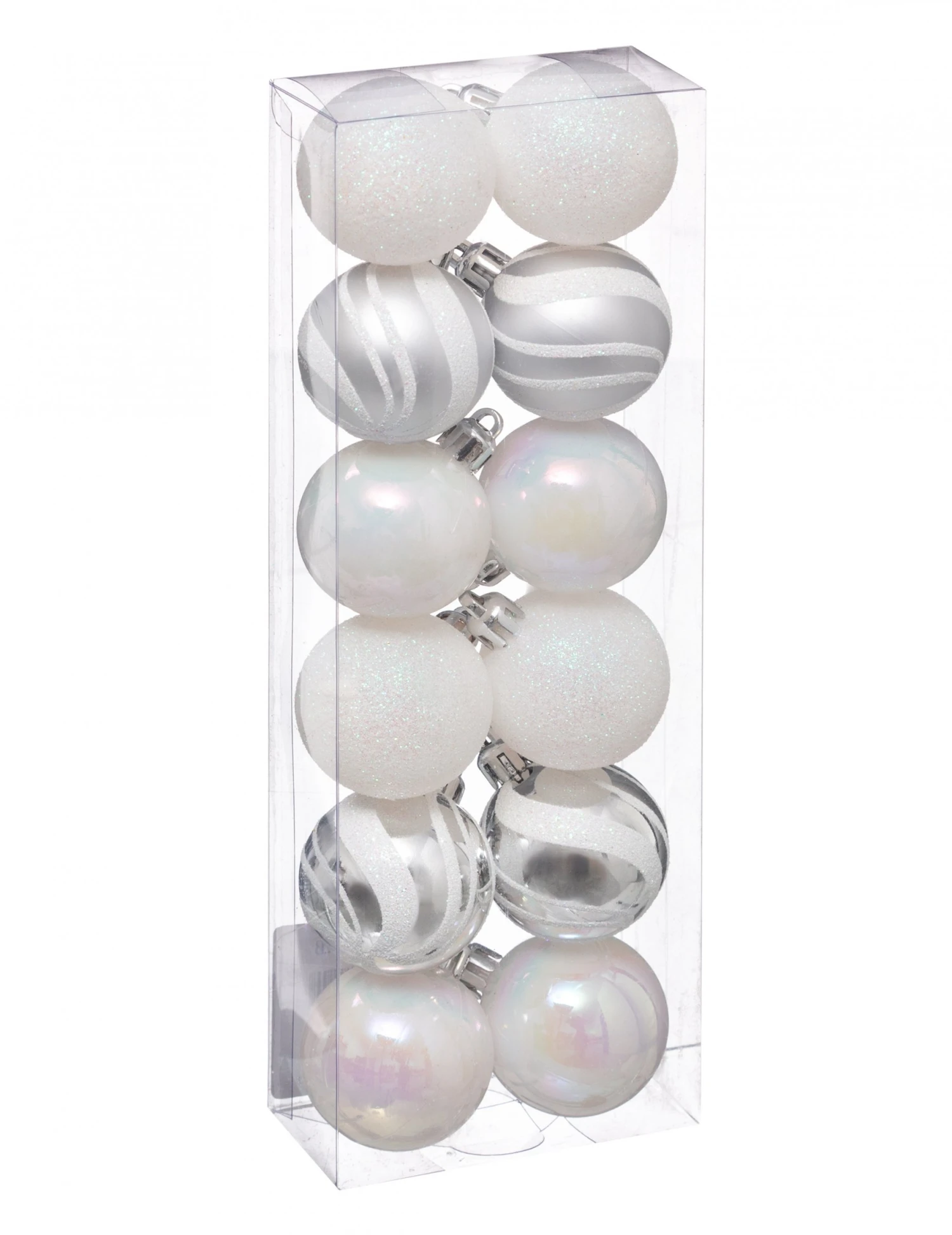 Elles font environ 4 cm de diamètre et sont décorées de teintes blanches et argentées pailletées et brillantes.