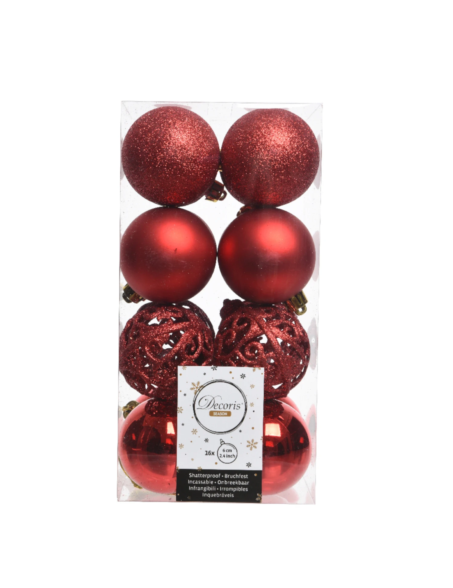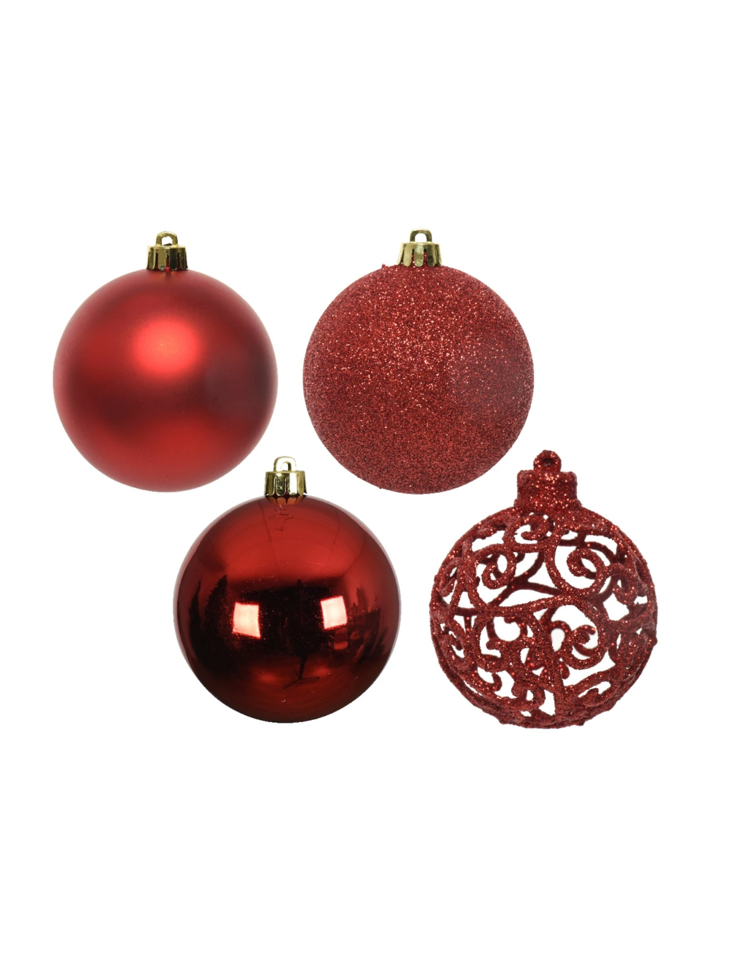 De couleur rouge, vous trouverez 4 boules pailletées, 4 brillantes, 4 mat et 4 ouvragées et pailletées.