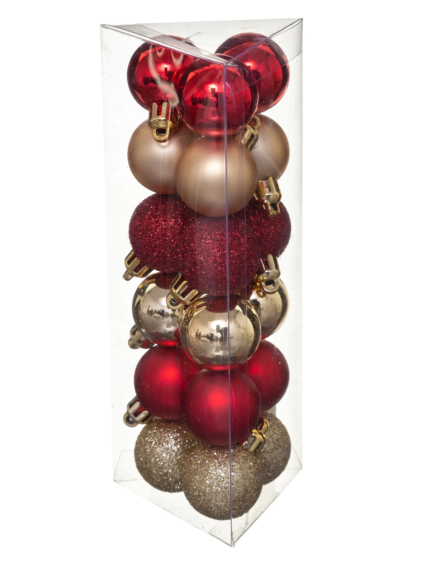 Ce lot de boules sera idéal pour décorer votre sapin de Noël dans des tons rouge et doré !