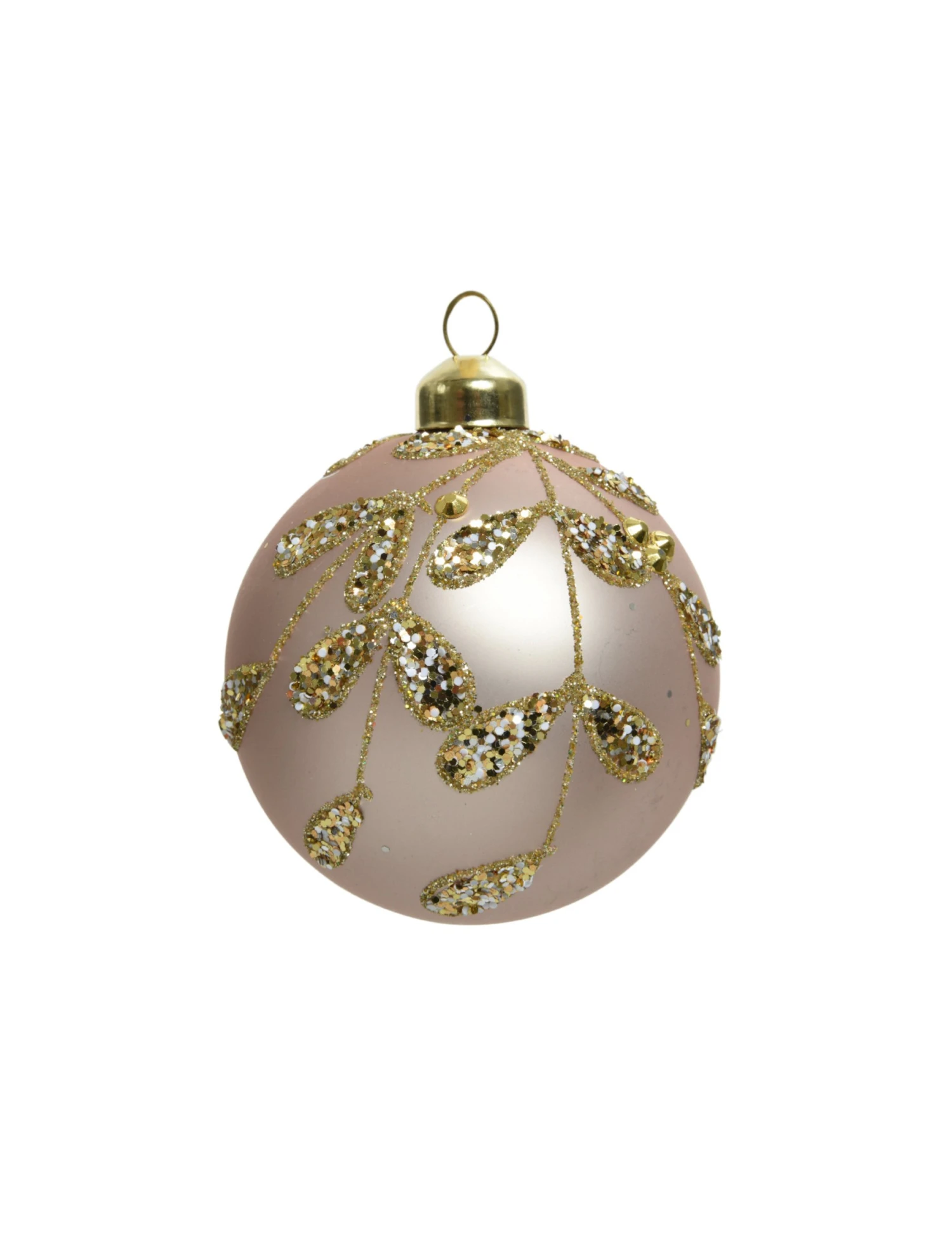 Elles sont de couleur rose poudré et décorées de feuilles dorées à paillettes.