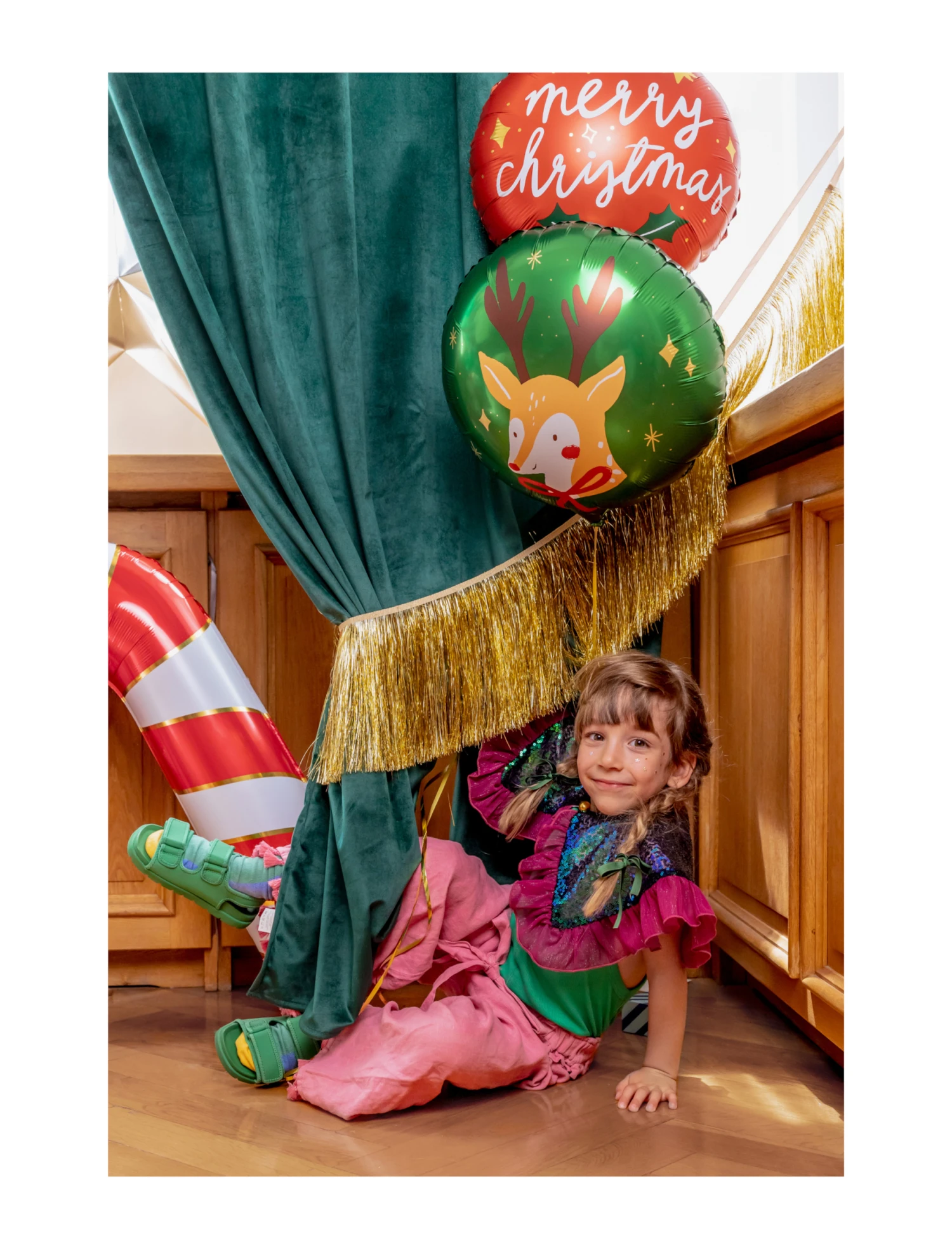 Il est en aluminium vert avec au centre un des rennes du Père Noël entouré de jolies étoiles dorées.