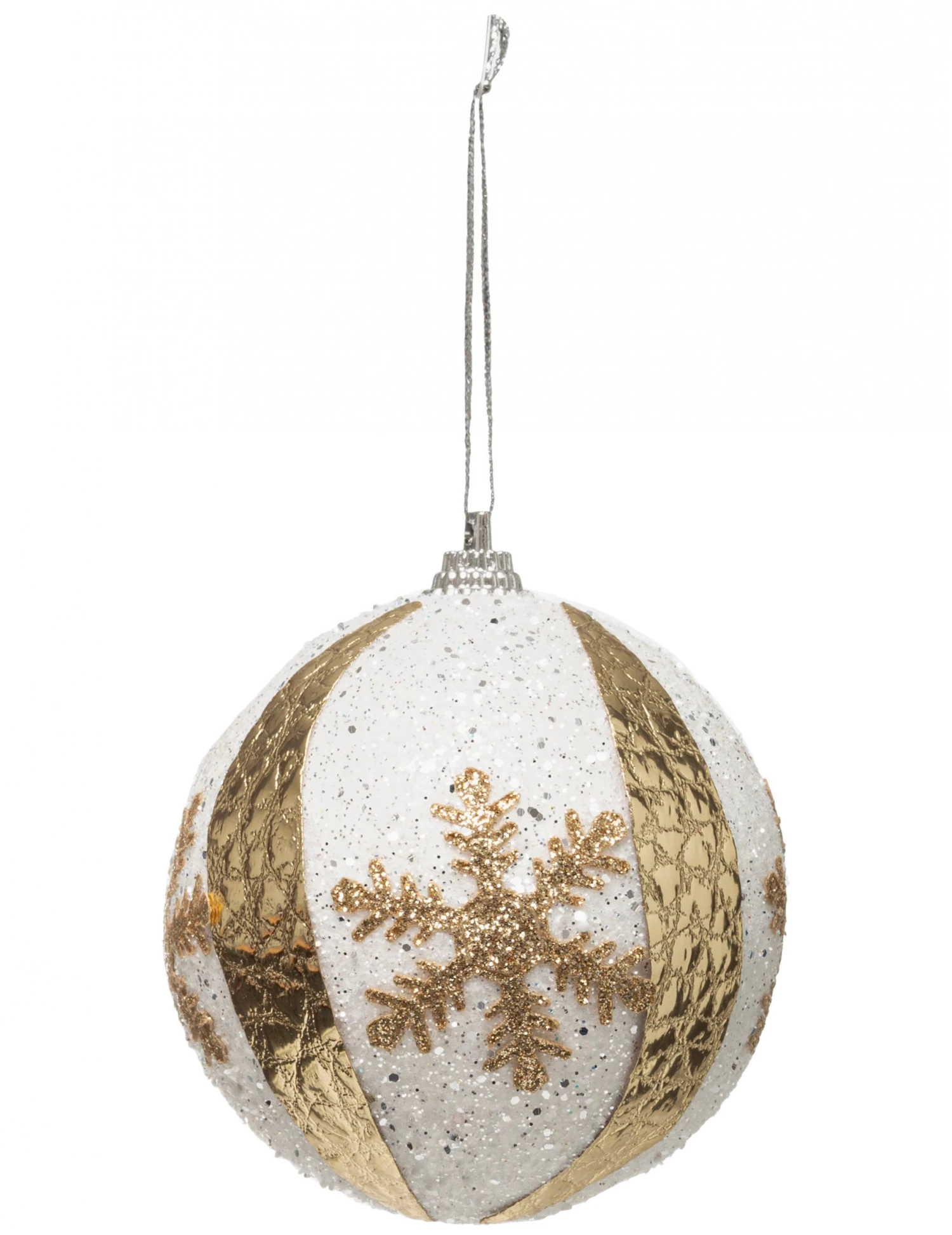 Elle est rayée de blanc et or et décorée de paillettes et d’un flocon doré.