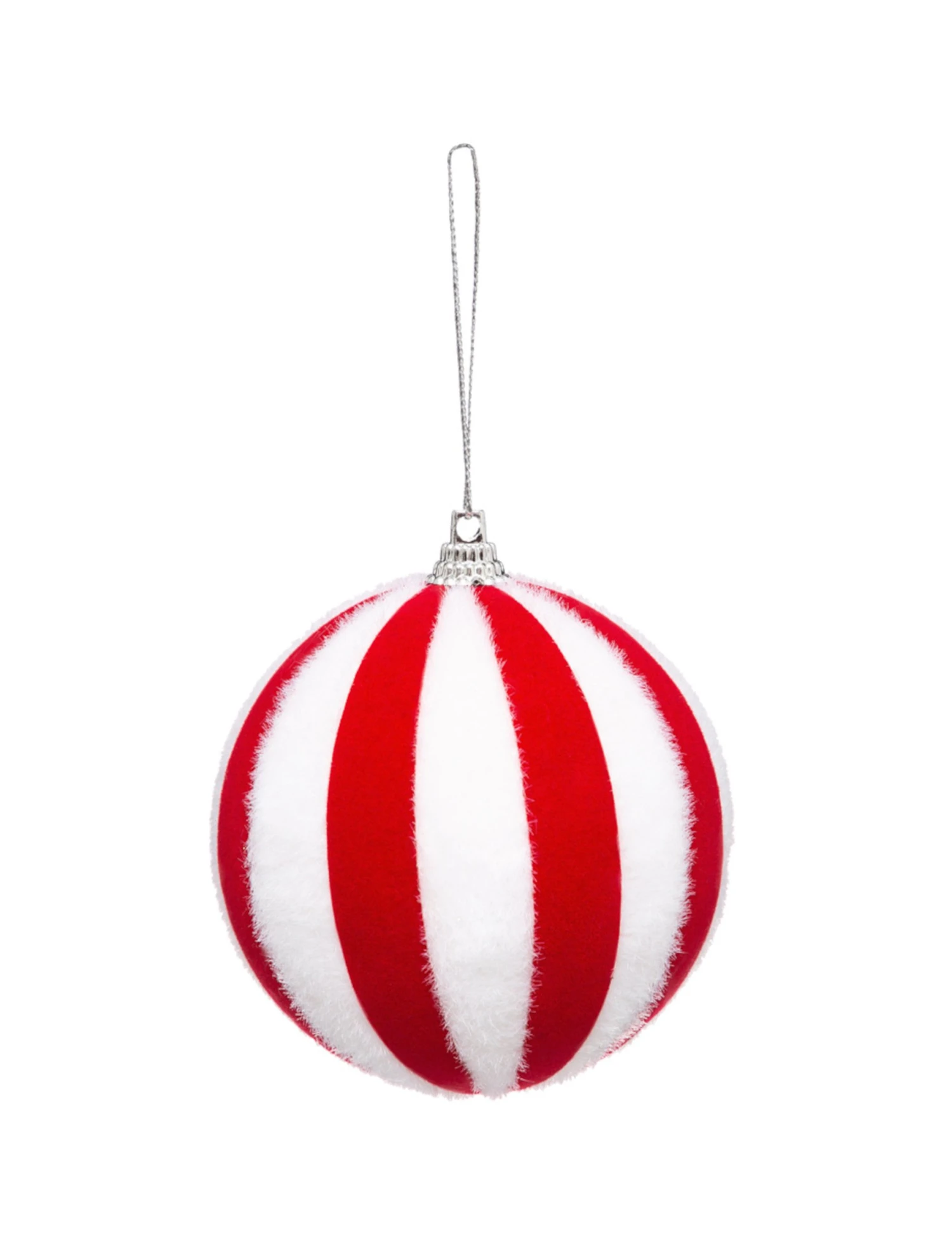 Pour une ambiance traditionnelle ou sur un thème cirque, cette boule rayée viendra compléter votre décoration de Noël !