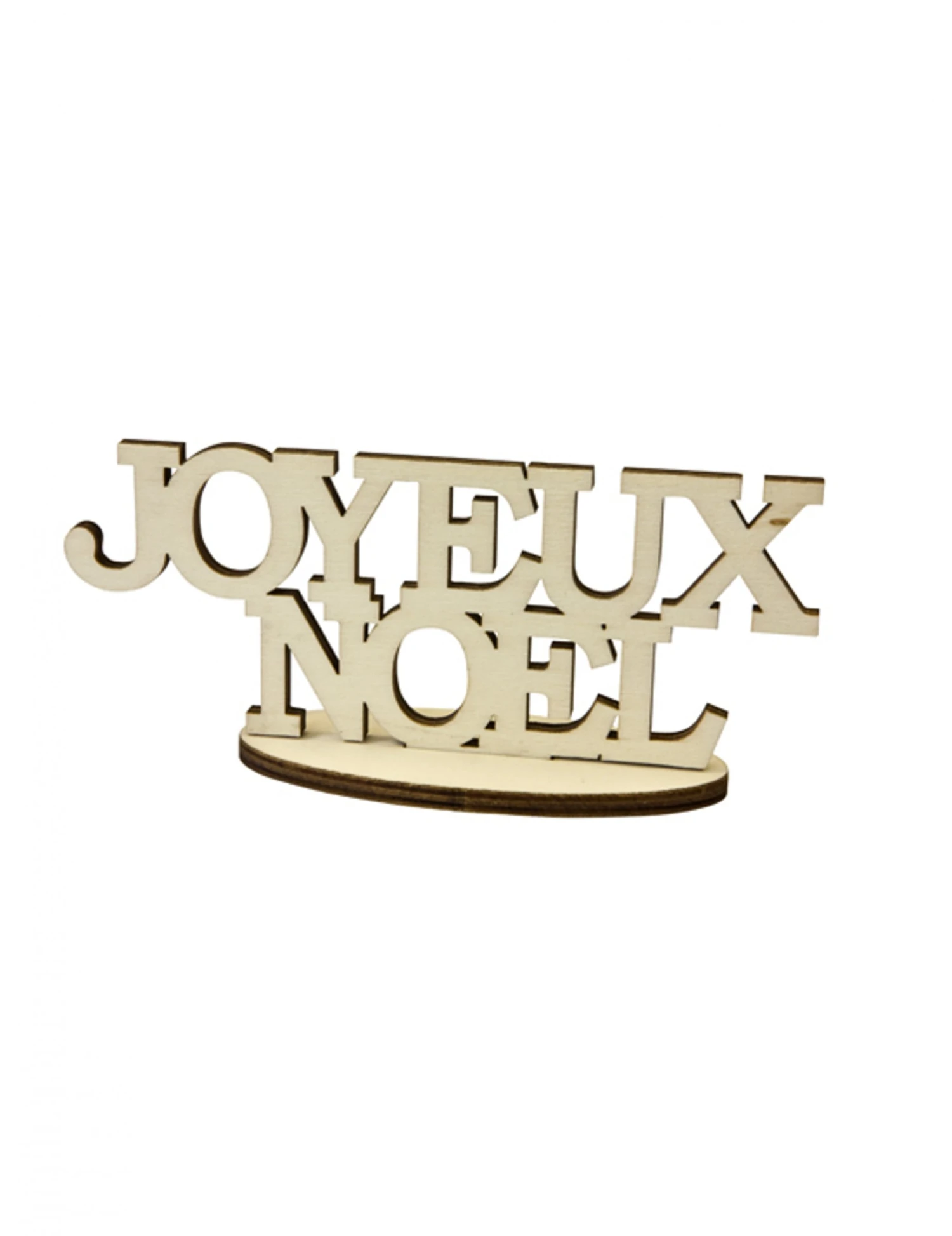 Il représente l’inscription « Joyeux Noël » et est monté sur un socle plat qui lui garantit un bon maintien.