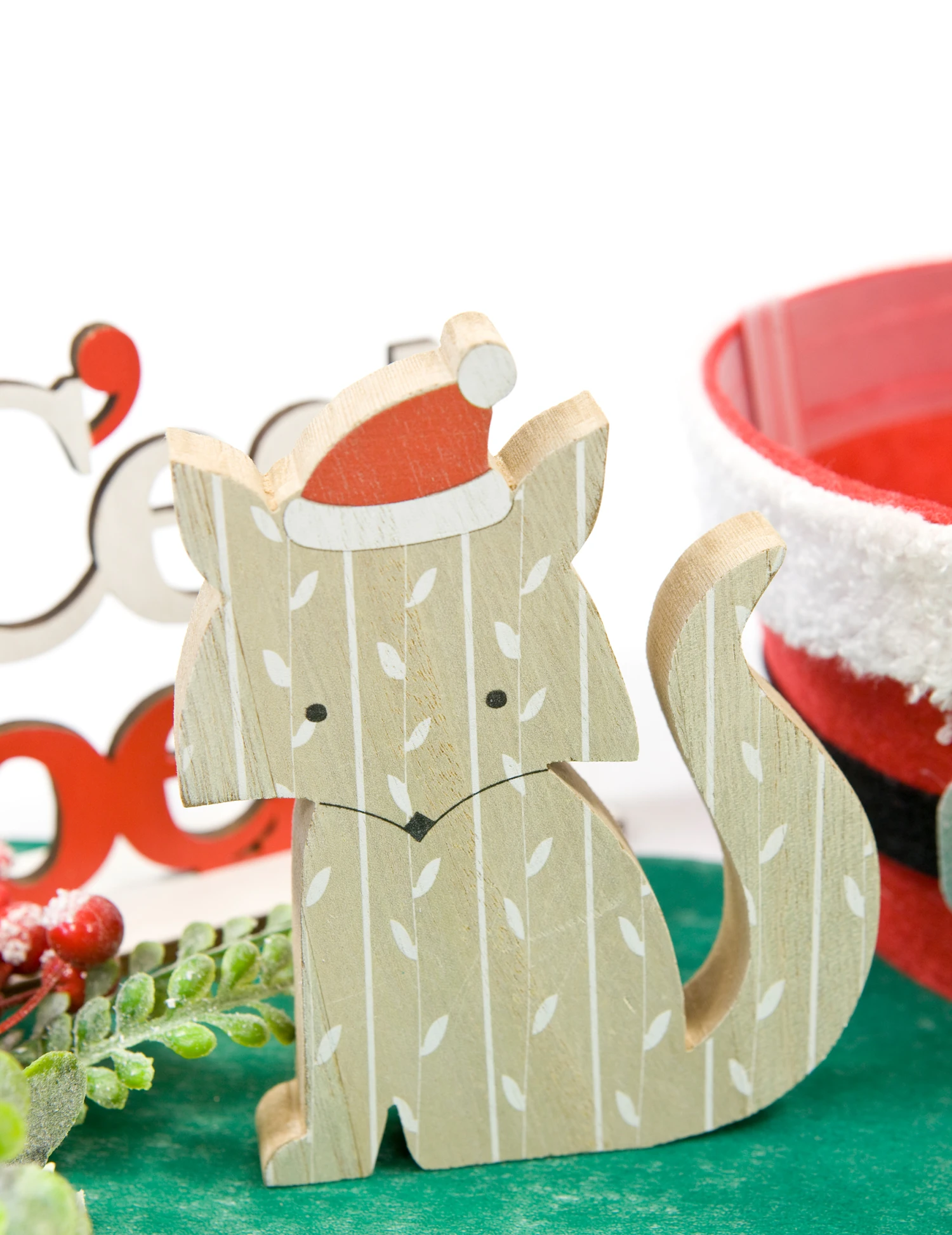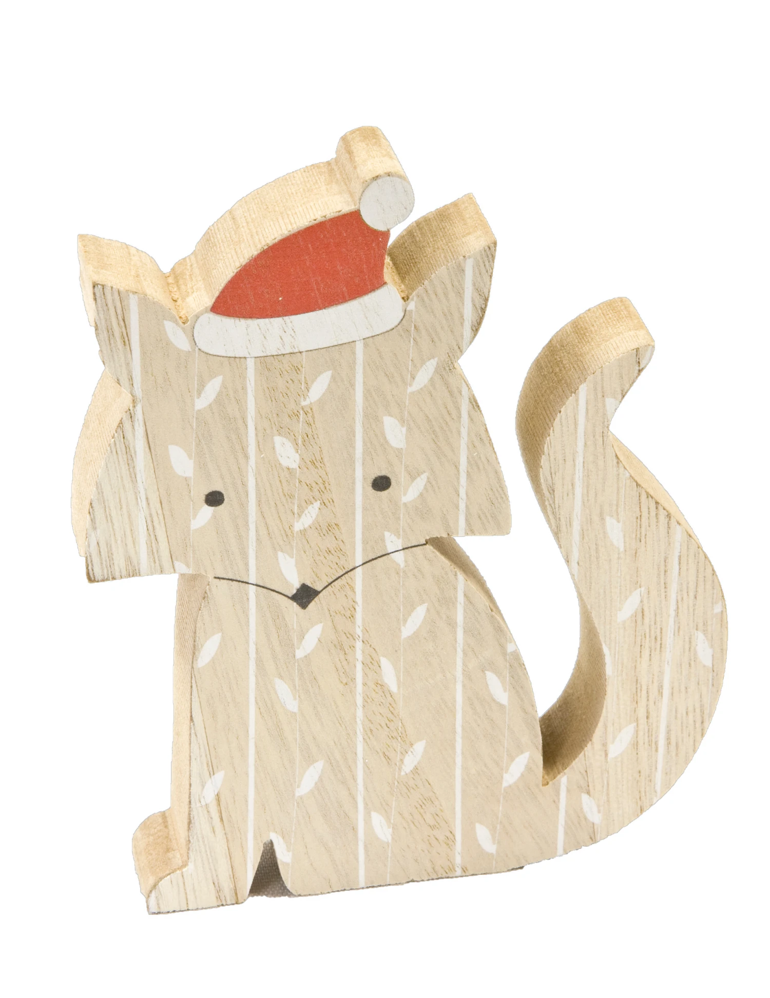 Elle est en forme de renard aux tons naturels décoré de motifs blancs, et portant un petit bonnet de Noël.
