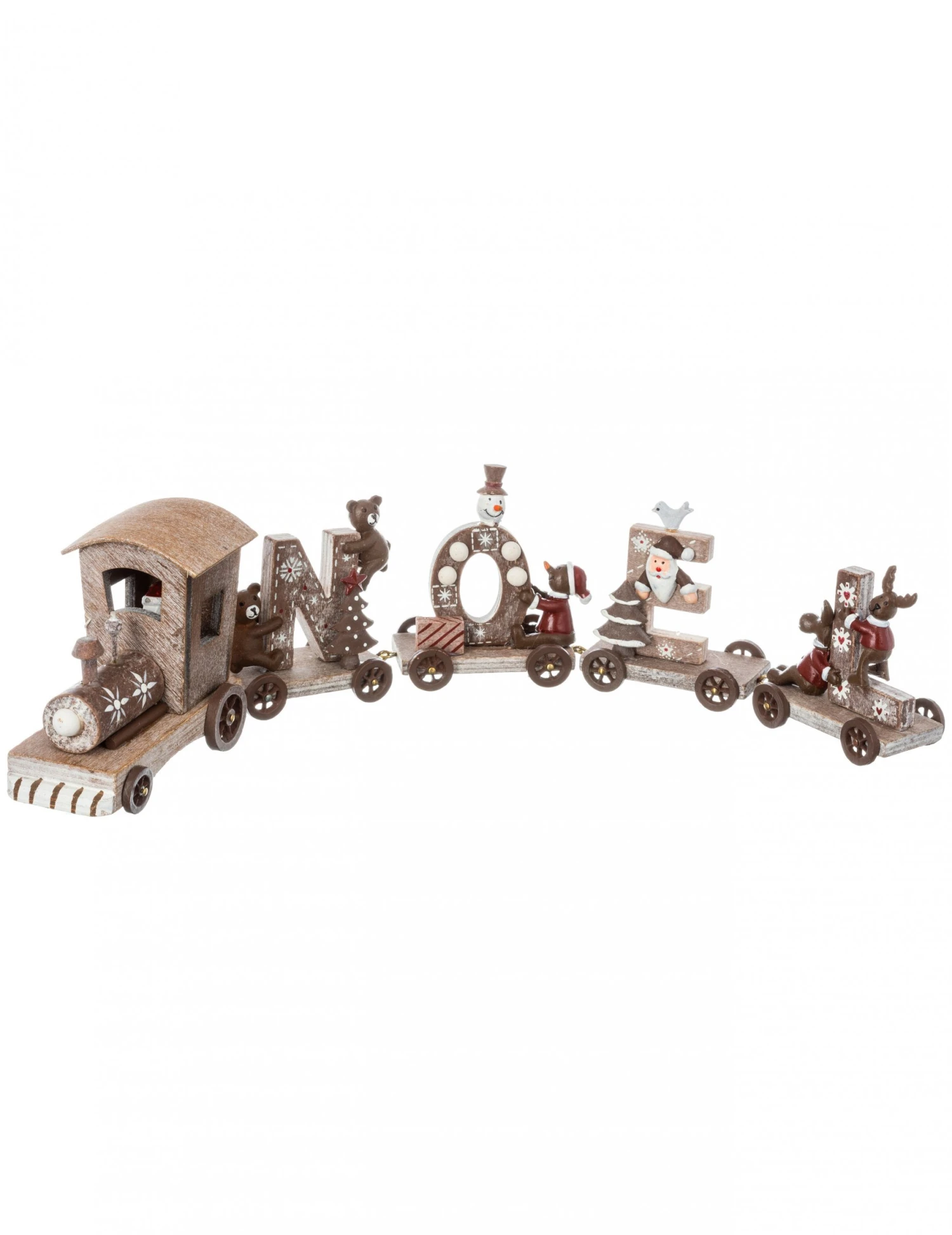 Elle représente un train qui transporte 4 wagons portant chacun une lettre pour former le mot « Noël« .