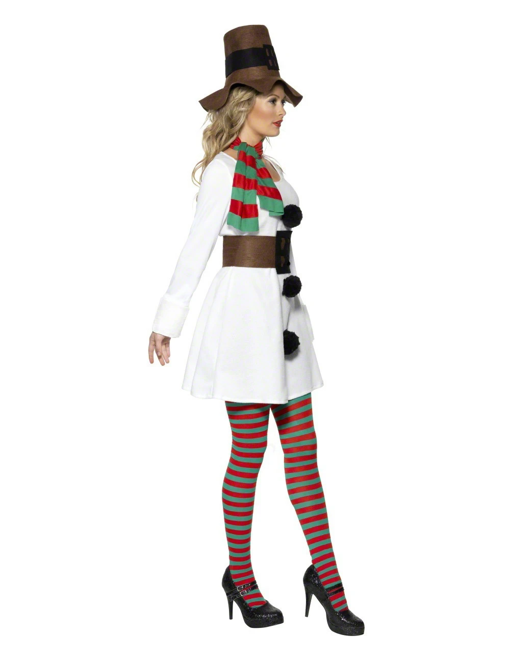 Ce costume pour femme de bonhomme de neige est composé d’une robe, d’un bonnet et d’une écharpe.
