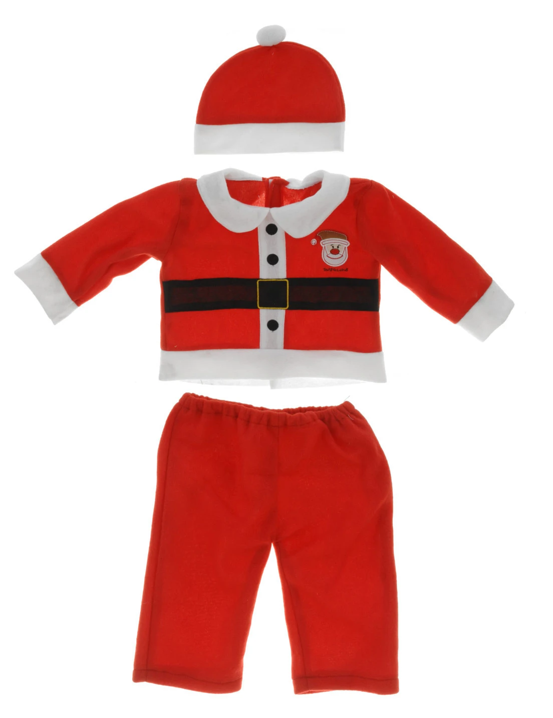 Ce déguisement de petit Père Noël pour enfant se compose d’un pantalon, d’un haut et d’un bonnet.