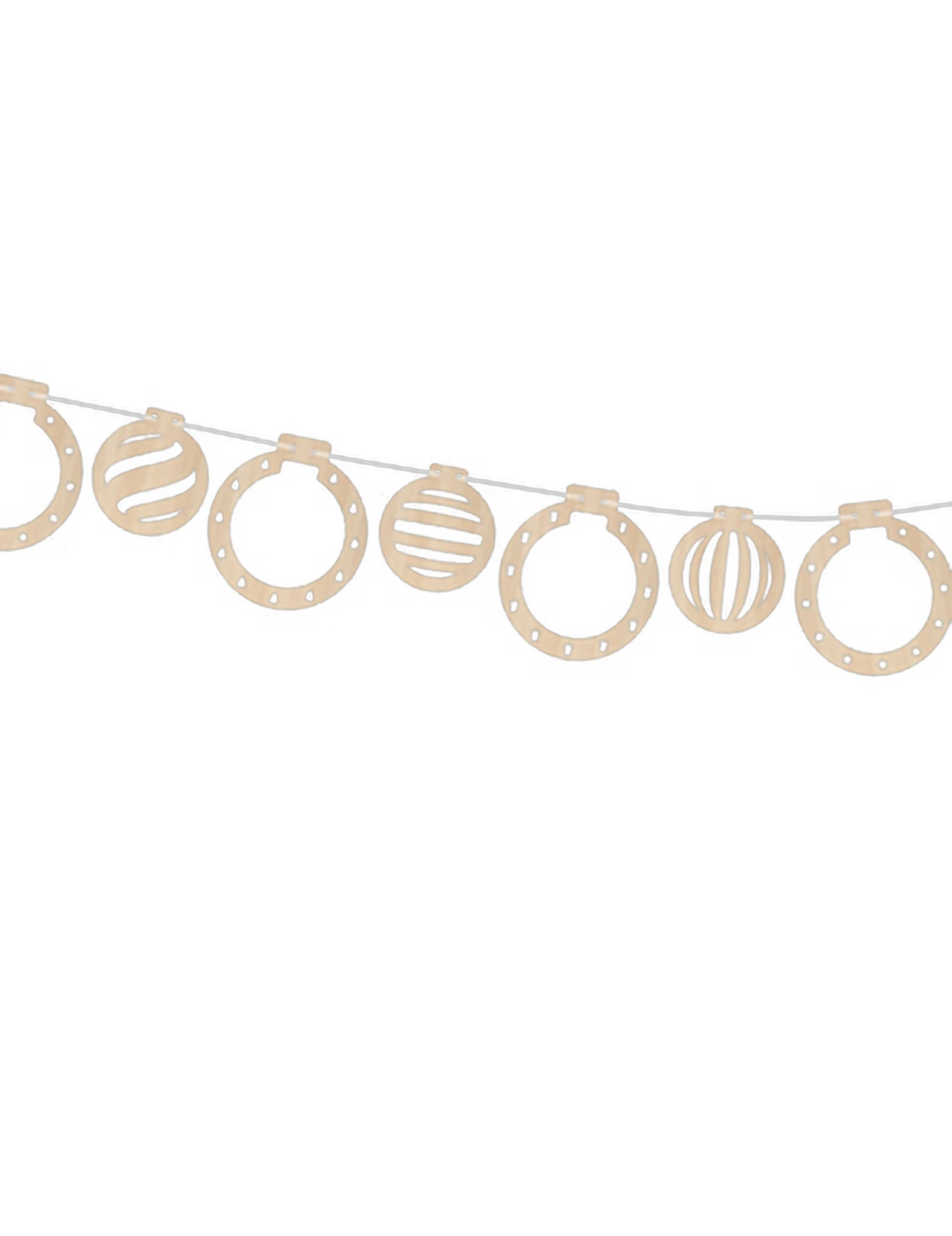 Elle est composée de 12 boules de Noël ajourées en bois, d’environ 8 à 11 cm de diamètre.
