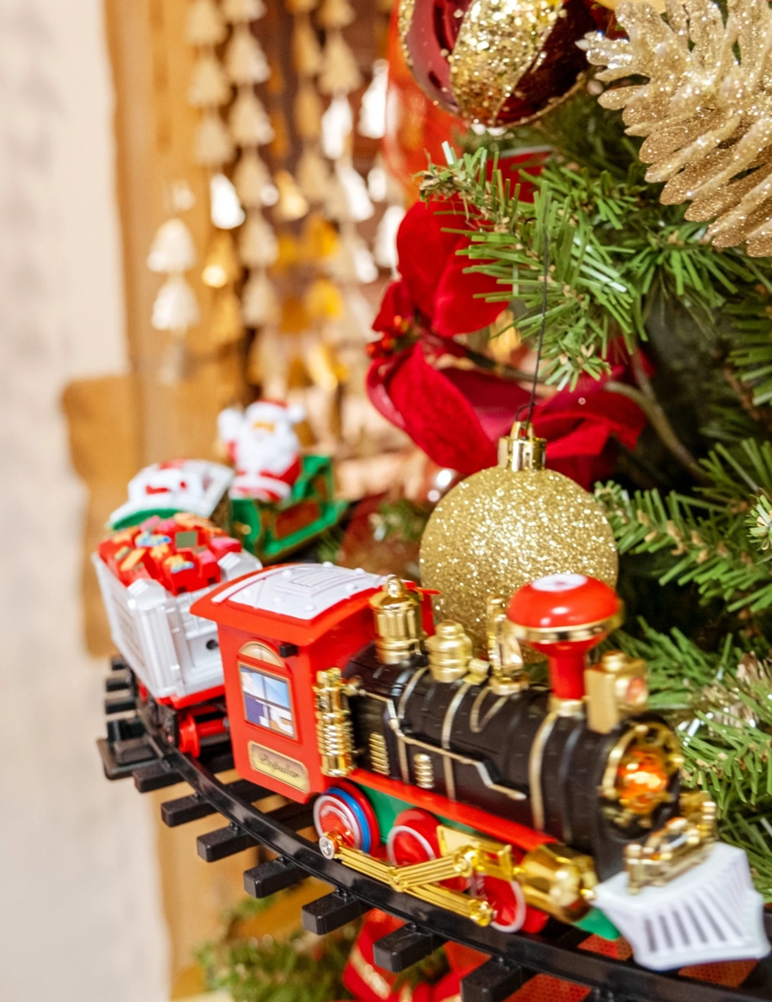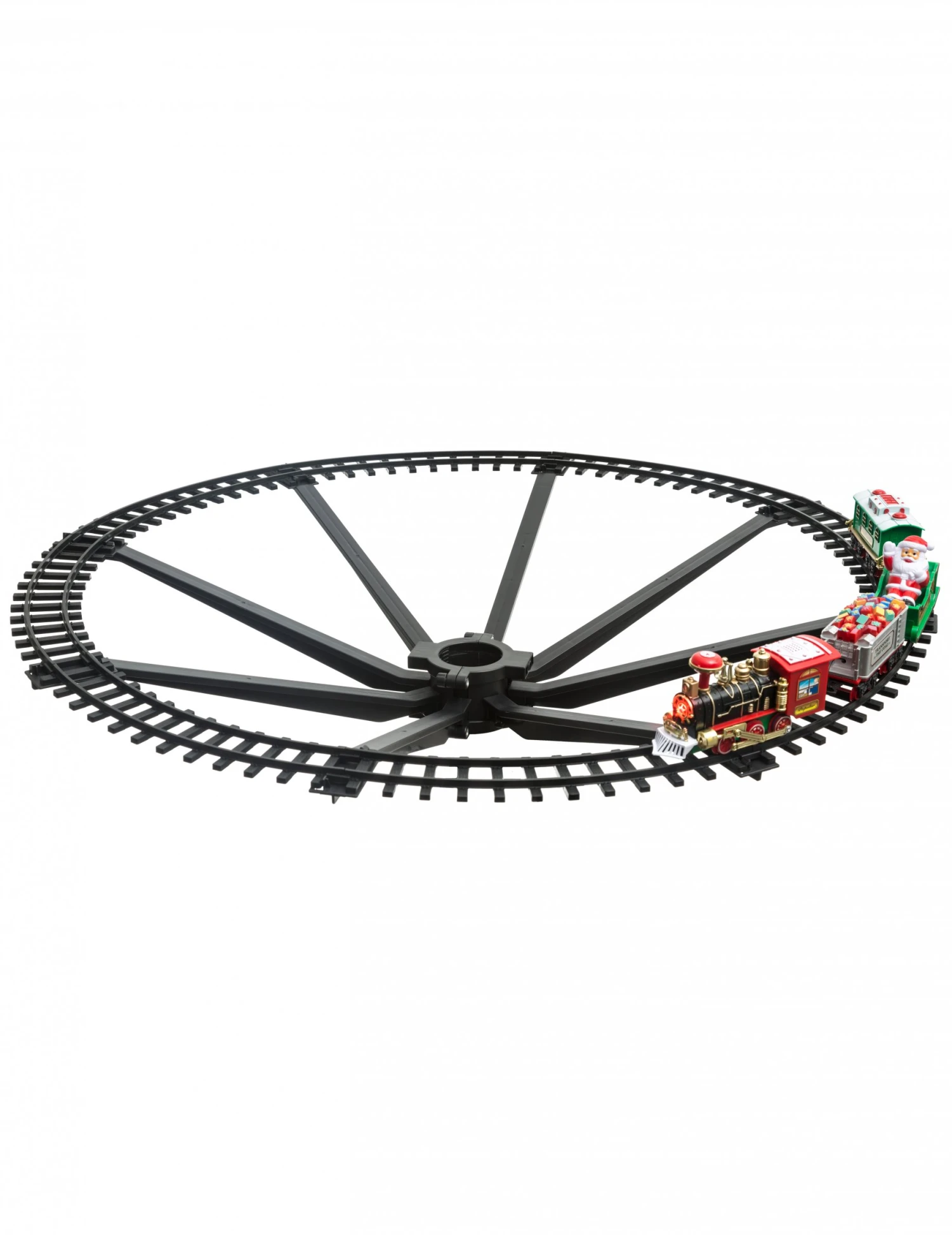 Il vous faudra assembler les 8 tronçons de rail autour de votre sapin avant de placer dessus la locomotive et les 3 wagons.
